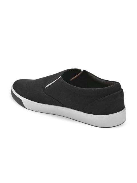 A couple of black casual shoes.Canvas upper, has elasticated gussets along the mouth, a fortified heel collar.Textured outsole with designed scores.